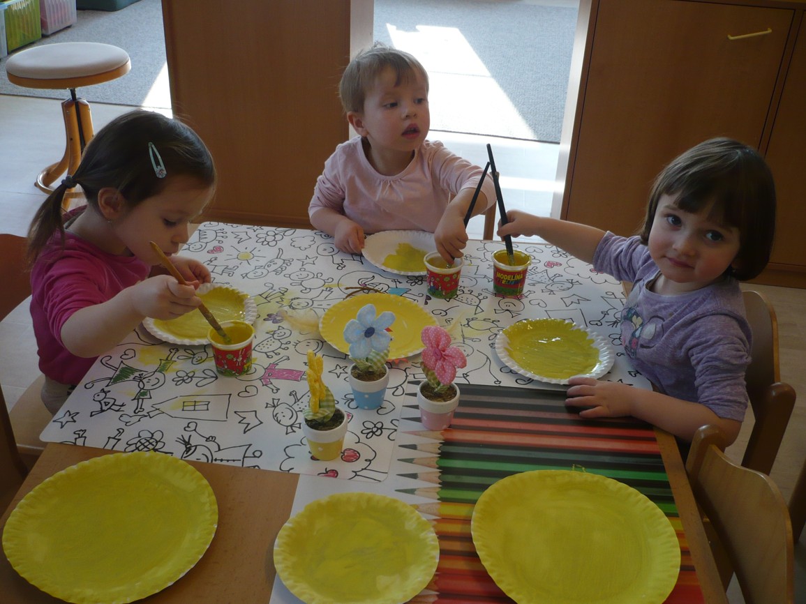 Sluníčko už svítí, roste první kvítí. Co se to tu stalo? Blíží se k nám jaro.   1. oddělení Berušky 2 oddělení Motýlci