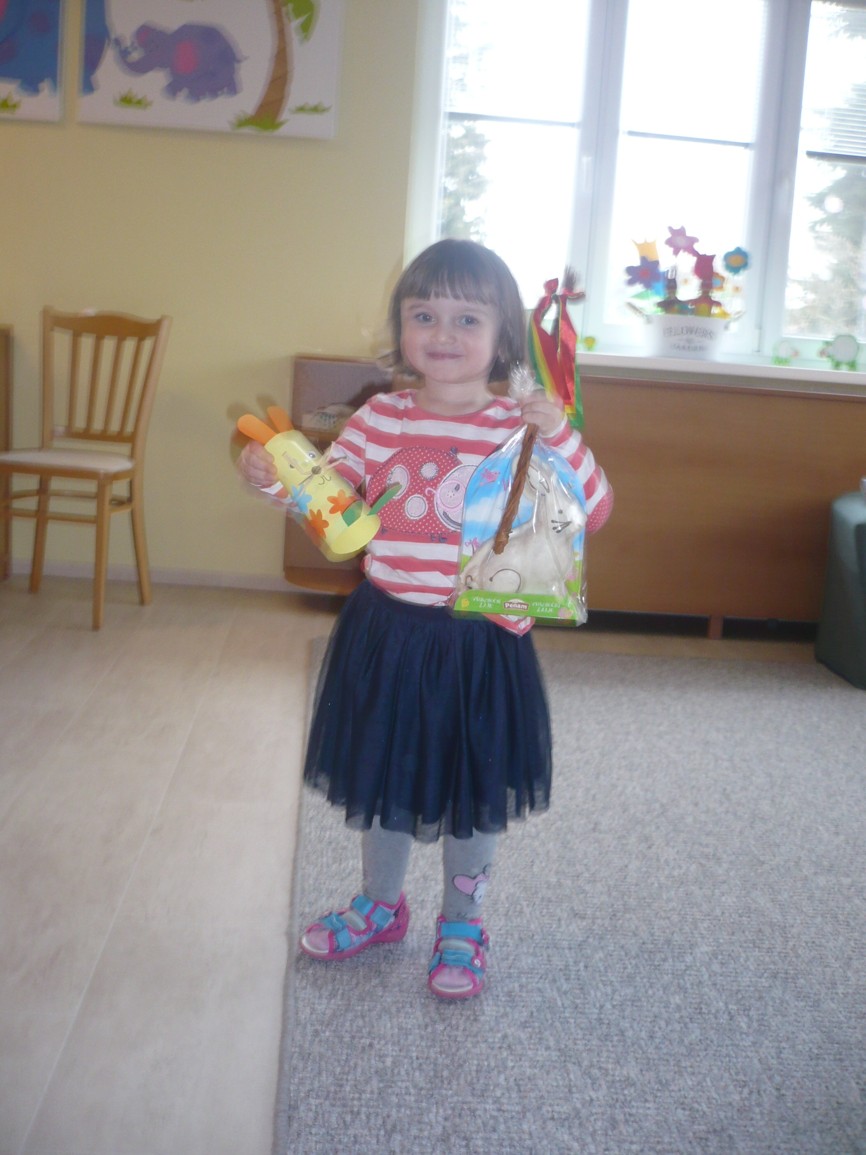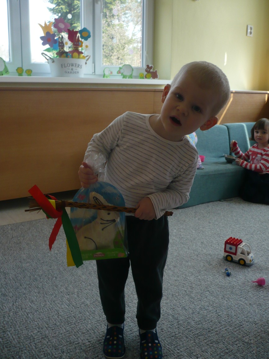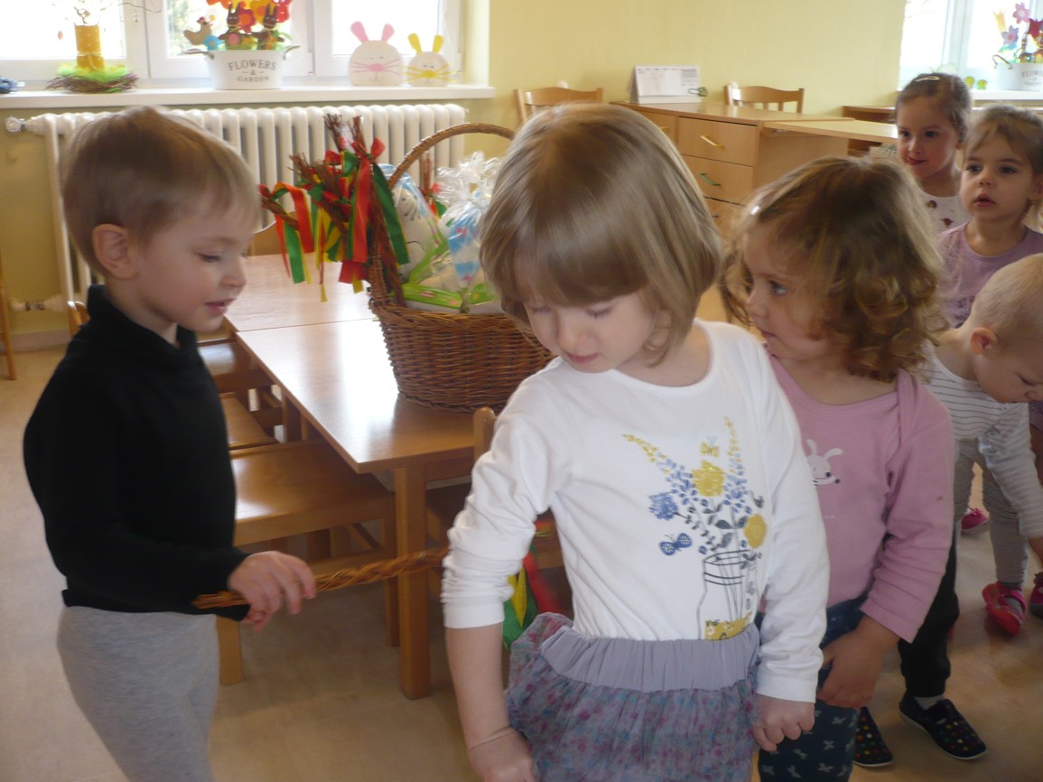 v tlamičce má košíček, v tom košíčku vajíčka, co mu dala slepička.