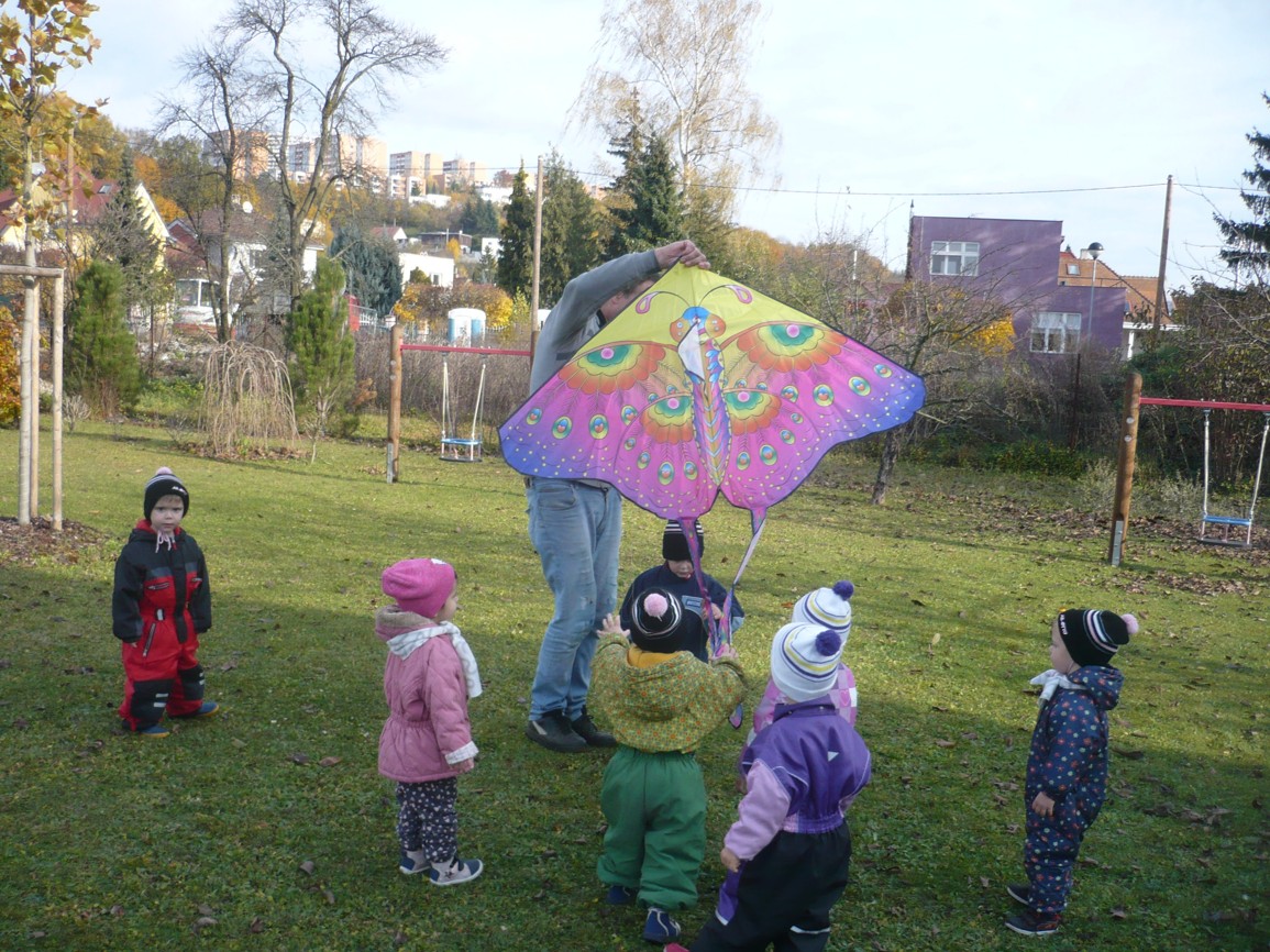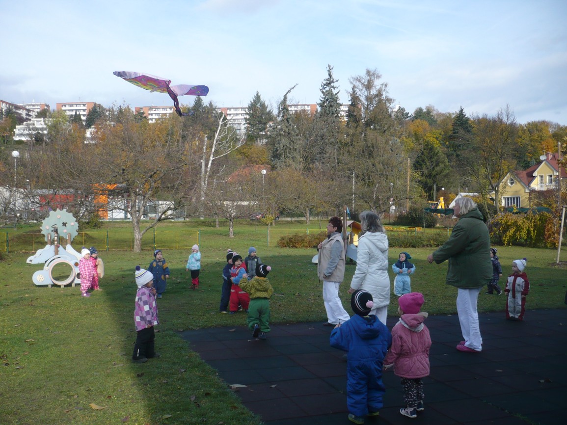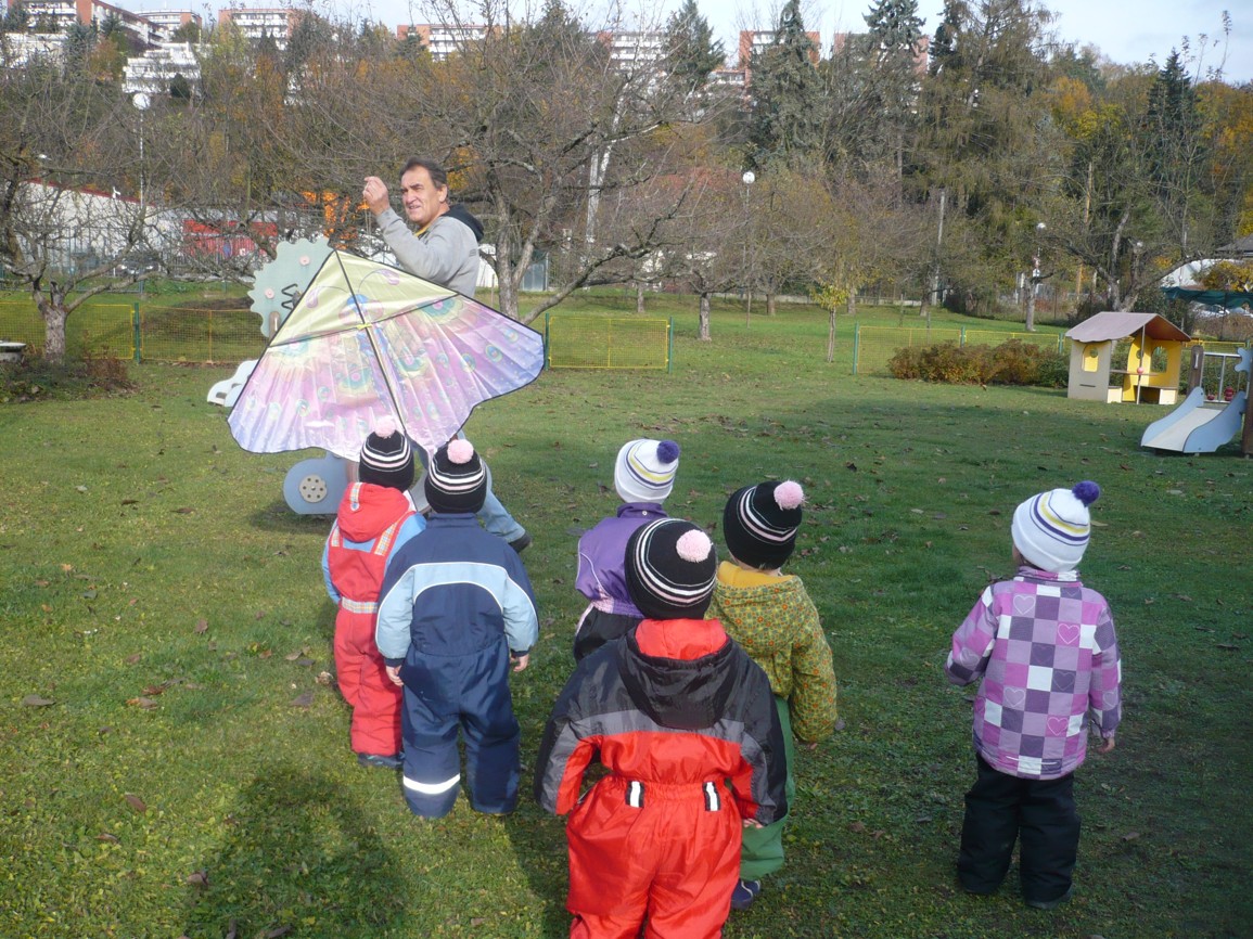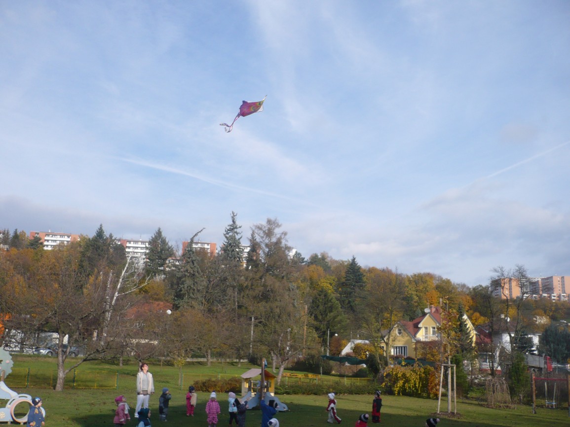 Vítr fičí, vítr duje, copak to v něm poletuje? Papírový dráček, má barevný fráček.