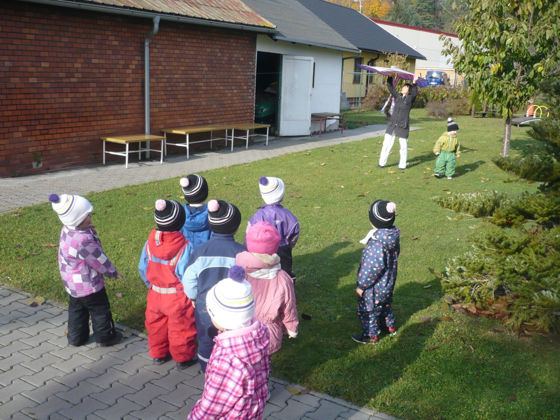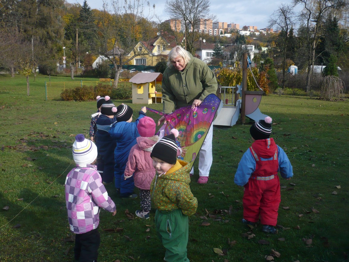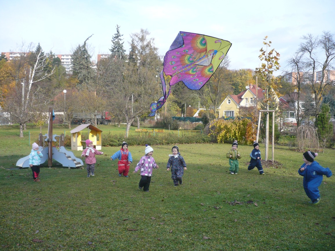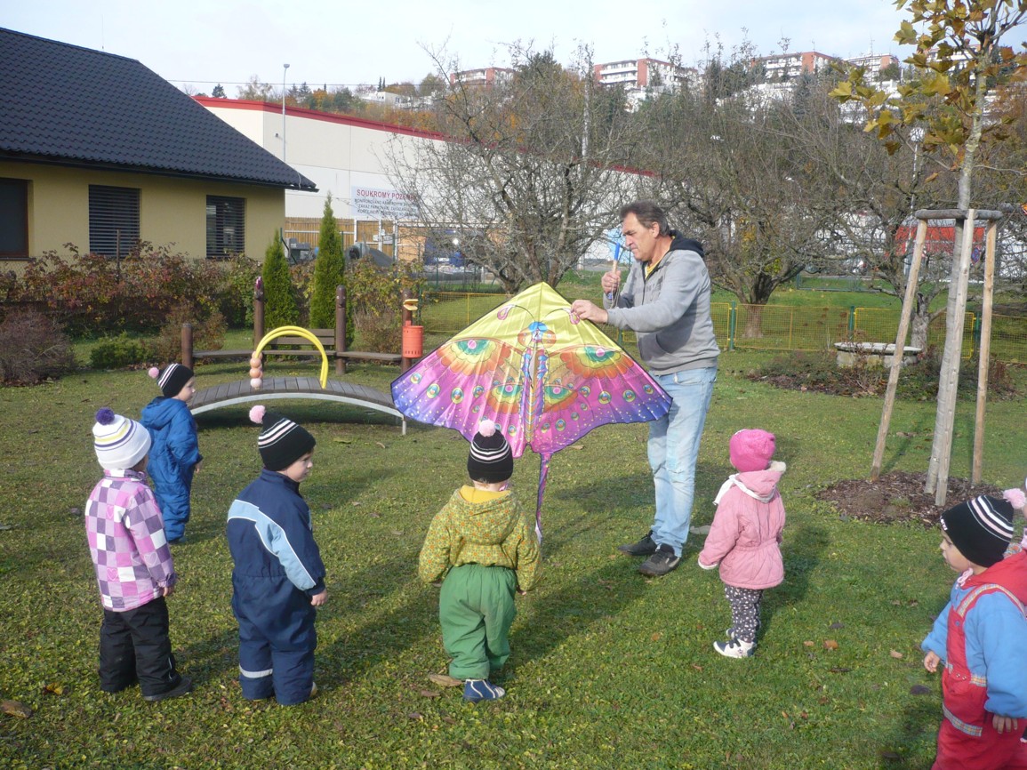 Vítr fičí, vítr duje, copak to v něm poletuje? Papírový dráček, má barevný fráček.