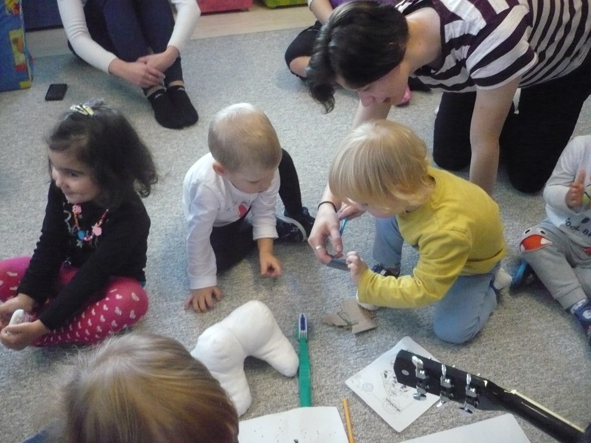 Když chceš zdravé zoubky mít, musíš si je vyčistit. Jeden zoubek, druhý, třetí, čistí si je všechny děti.