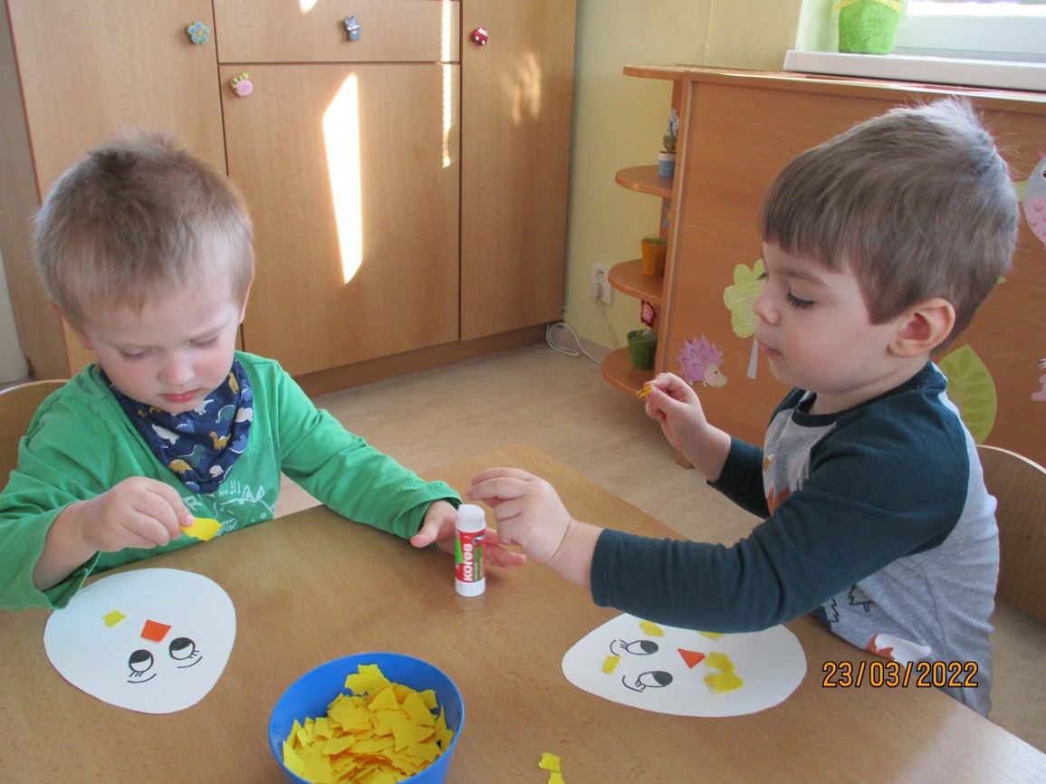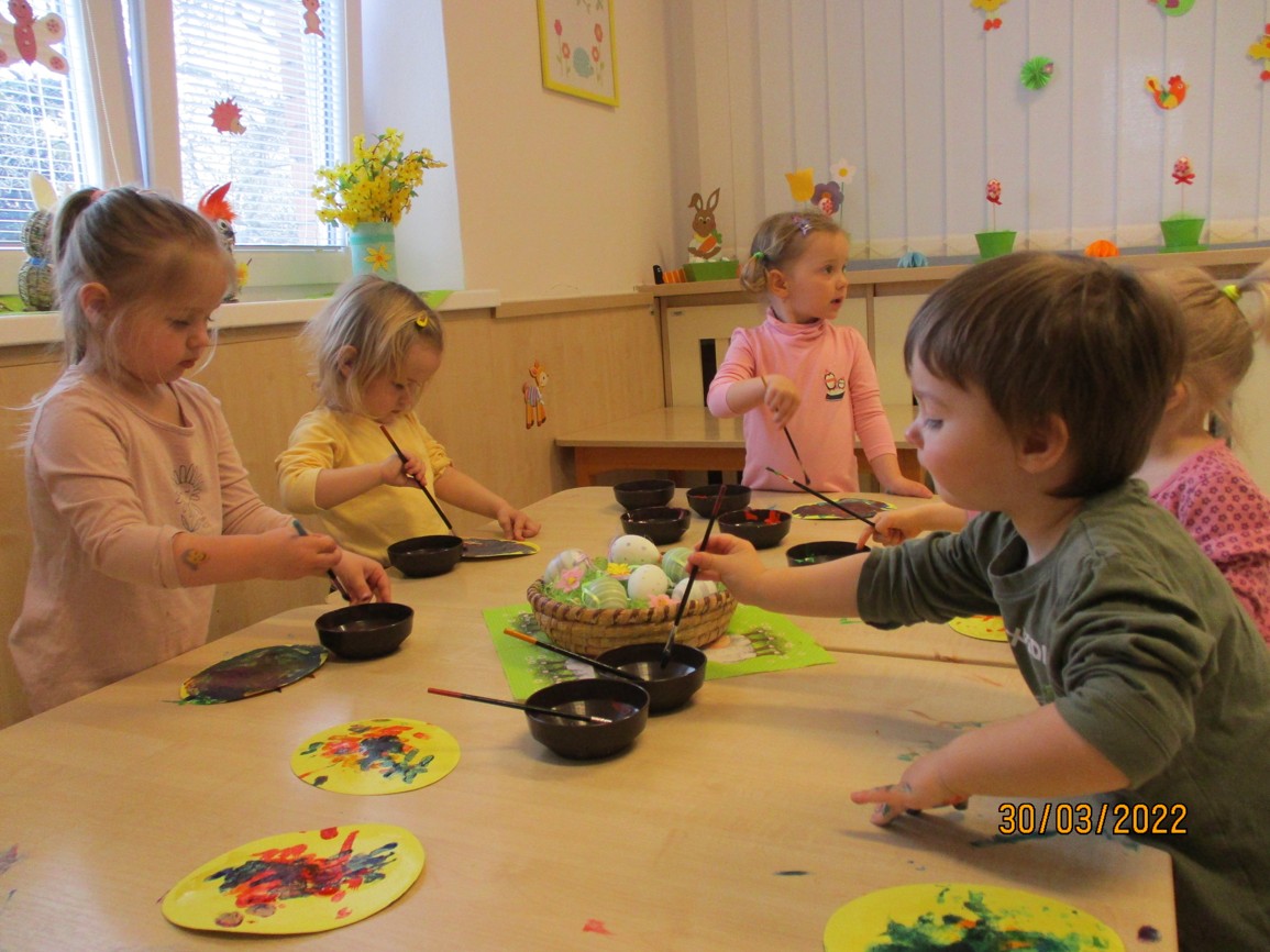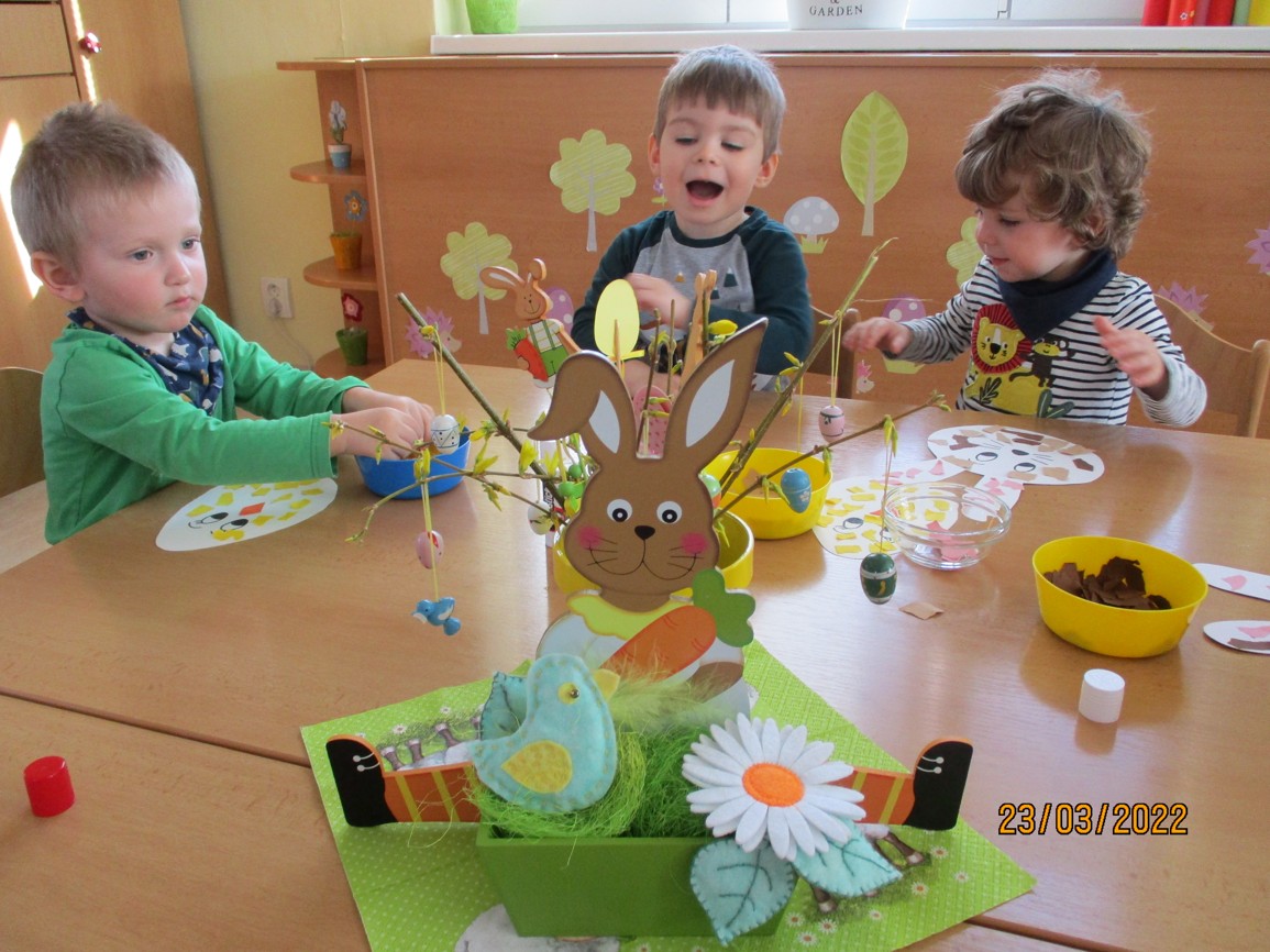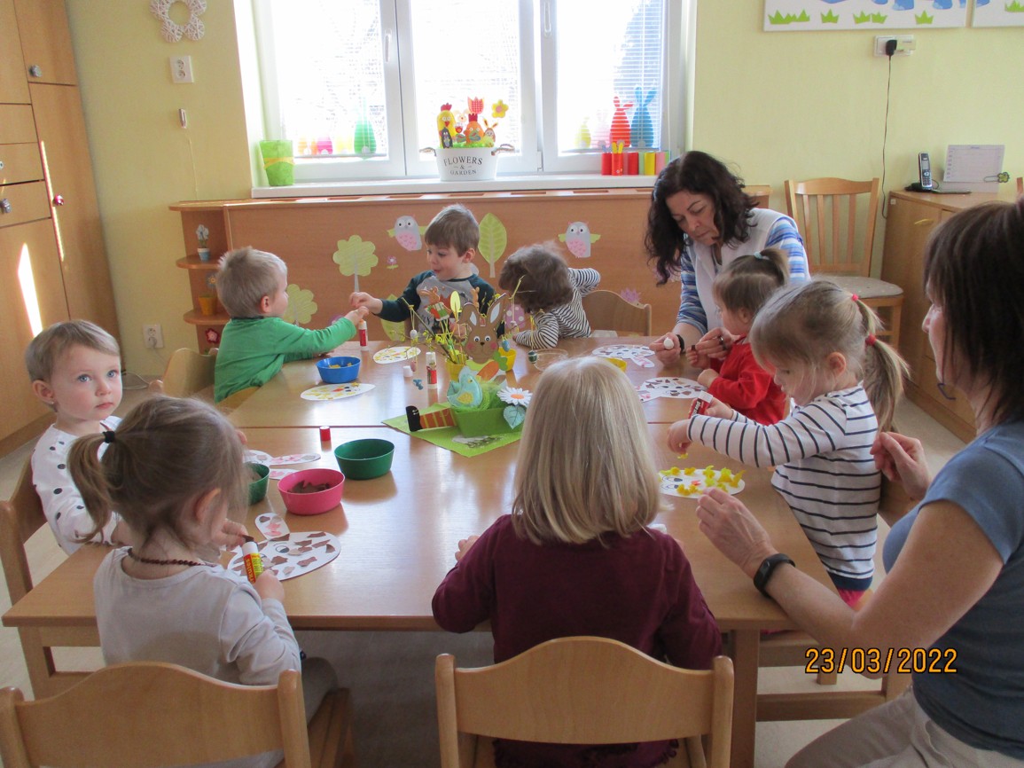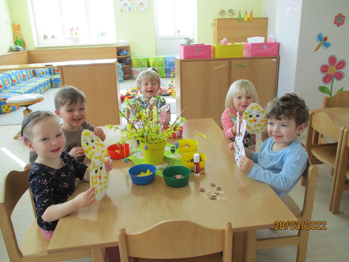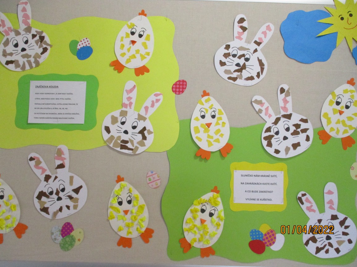 Sluníčko nám krásně svítí, na zahrádkách kvete kvítí. A co bude zakrátko? Vylíhne se kuřátko.